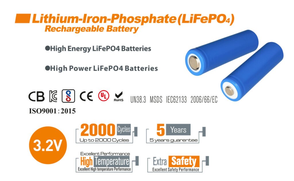 | IFR26650 | 3.2 | 3200 | ≤20 | 26.2×65.0 | 0.5C | 85.4 |