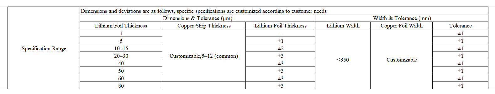 2. Composite strip thickness: lithium layer thickness (1μm–80μm) × composite width (≤350mm), including lithium alloy-streamlined composite strip products.
